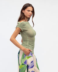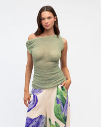∙ TF11093∙ Polyester∙ XS:S:M:L=1:2:2:2∙ Asymmetrical neckline∙ Off shoulder design∙ Side shirred detail∙ Slightly sheer design∙ Relaxed fit∙ Our model is wearing size S
